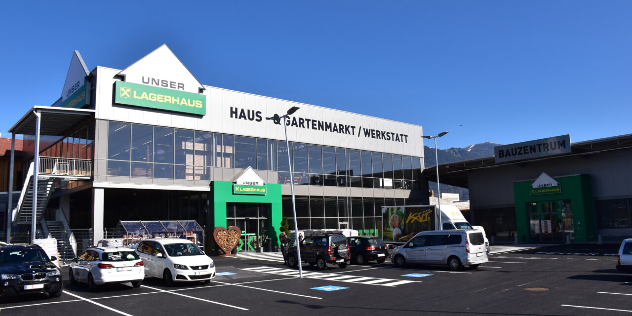 Lagerhaus Lagerhaus Villach AUFTRAGGEBERLEISTUNGSUMFANGBAUKOSTENJAHR DER UMSETZUNGTÄTIGKEIT „UNSER LAGERHAUS” Warenhandels GmbHPlanung Architektur, örtliche Bauaufsicht, BauKG7 Mio. EUR2019 – 2020Zu- und Umbau AUFTRAGGEBER „UNSER LAGERHAUS” Warenhandels GmbH LEISTUNGSUMFANG Planung Architektur, örtliche Bauaufsicht, BauKG BAUKOSTEN 7 Mio. EUR JAHR DER UMSETZUNG 2019 – 2020 TÄTIGKEIT Zu- und Umbau